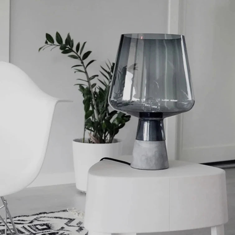 Moderna Luminária de Mesa em Cimento e Vidro