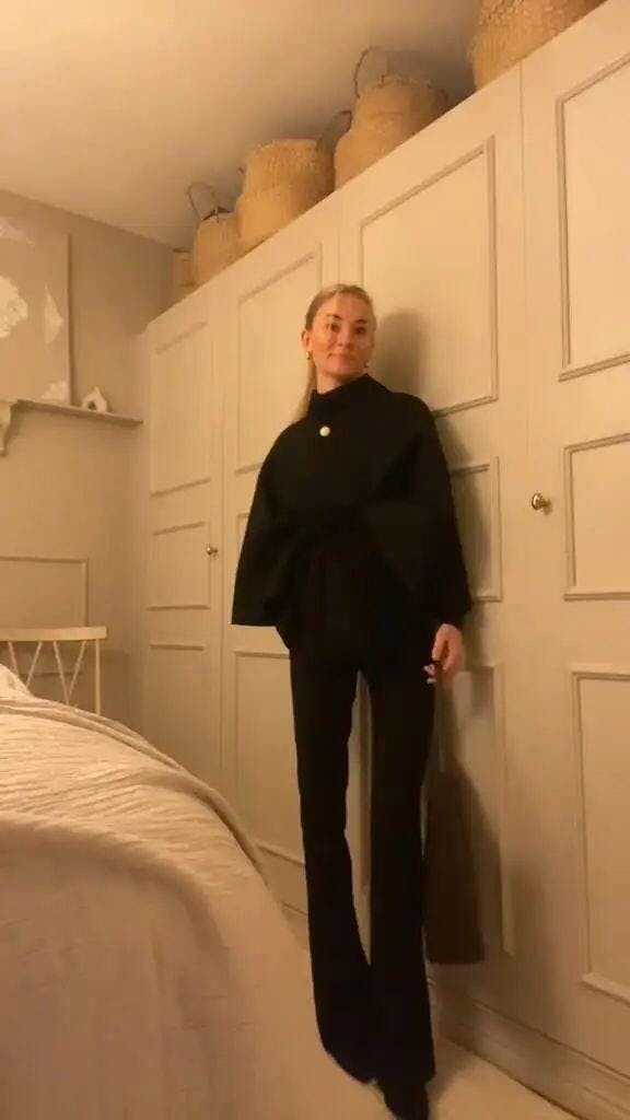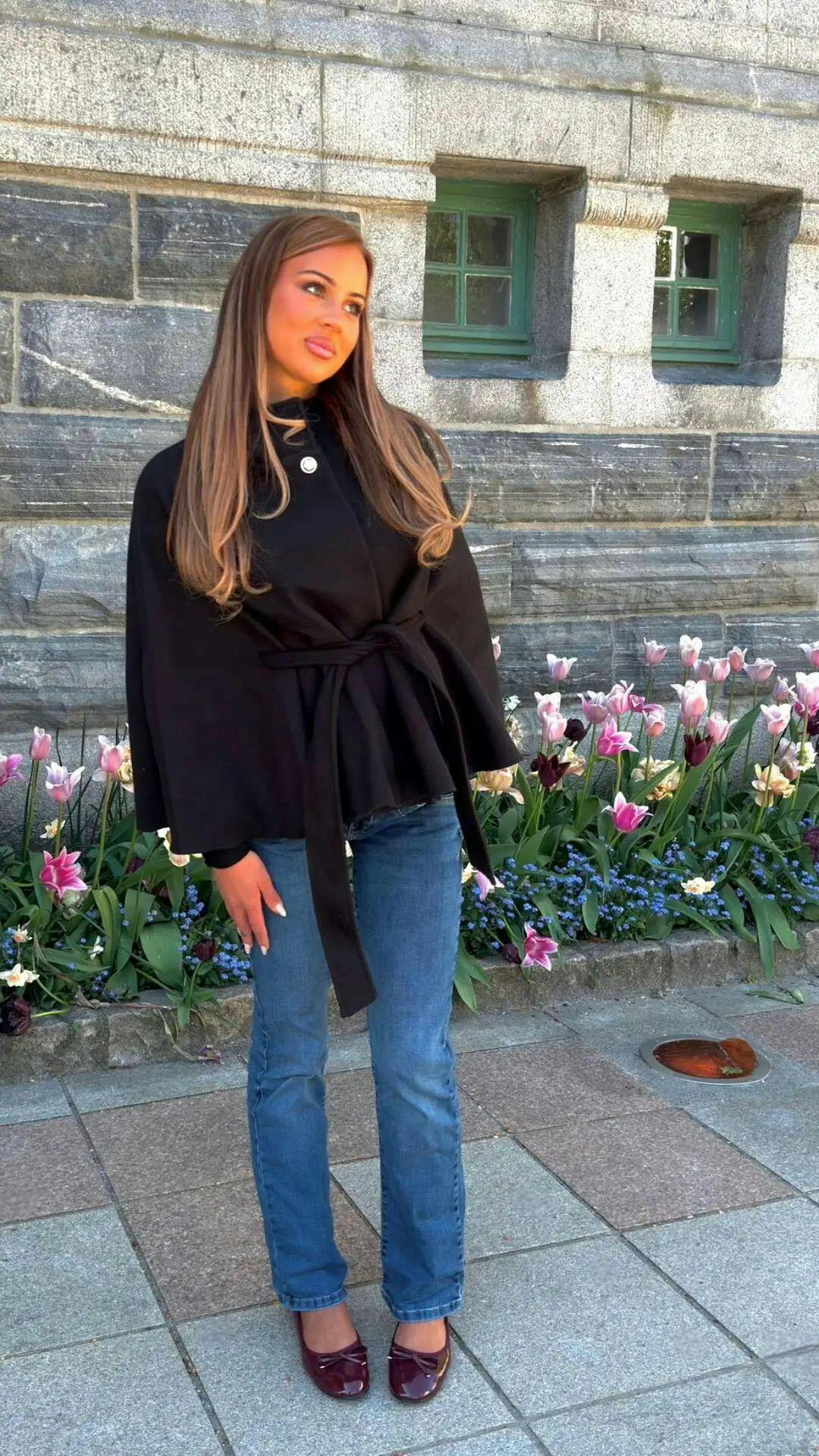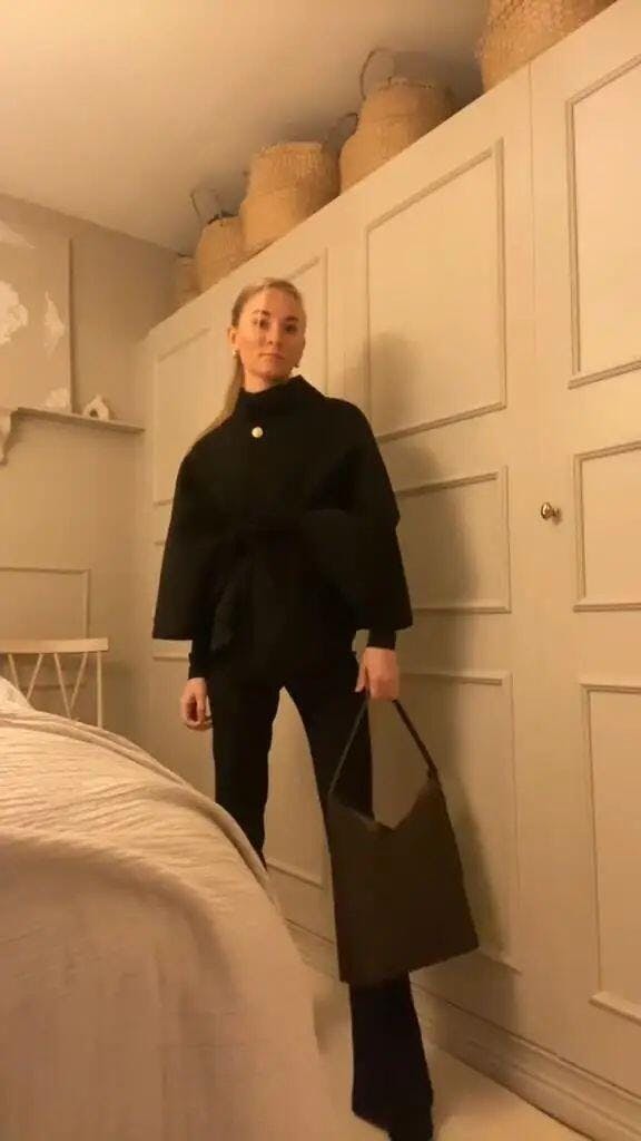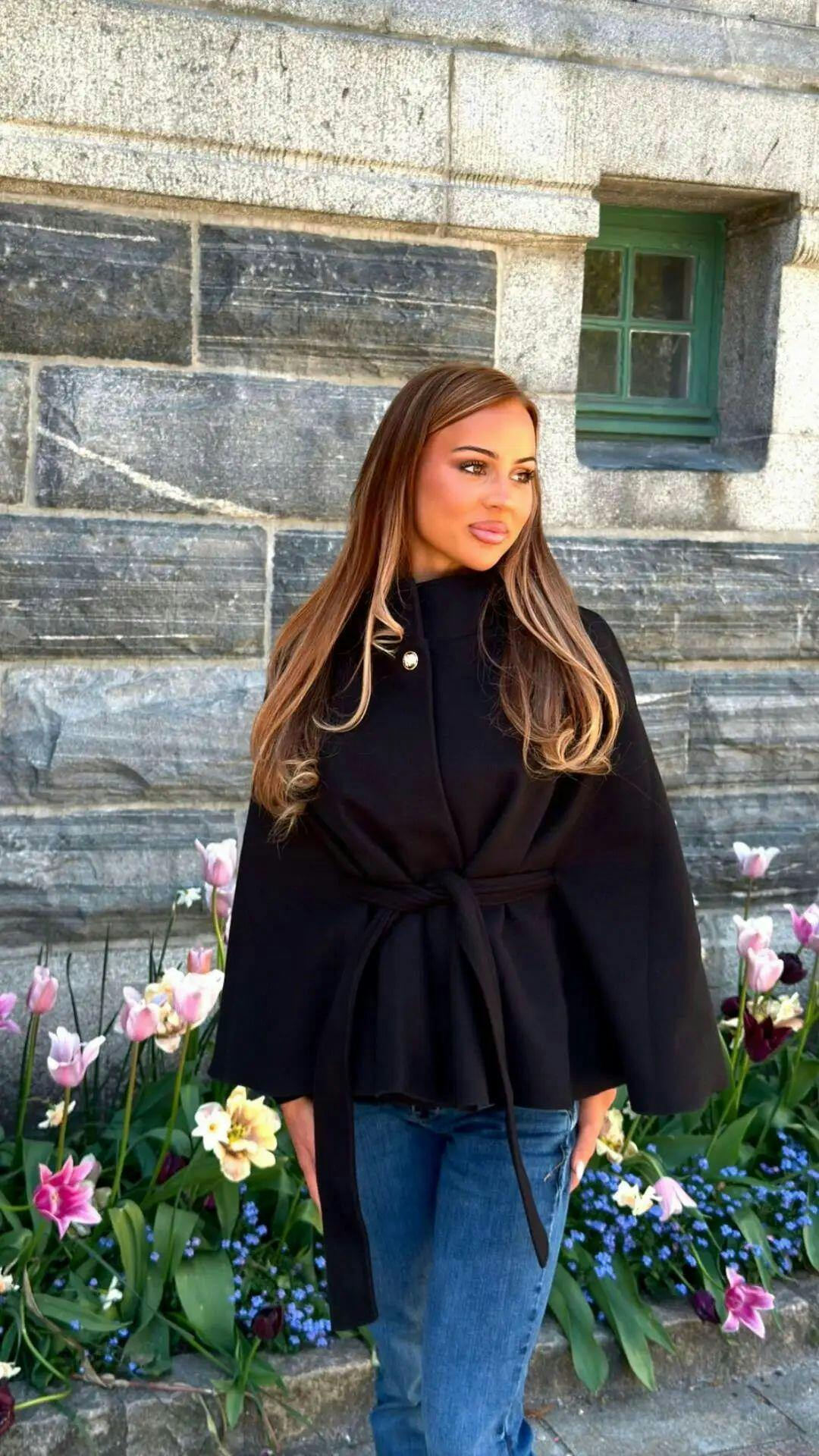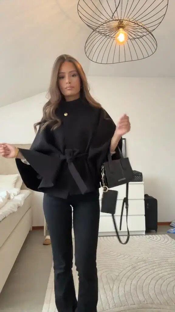 This black cape coat is a game - changer! The material feels premium, and the design is so unique. Wore it out and got so many compliments 🔥 . Its stylish, warm, and fits like a dream. Shipping was fast too. Definitely recommending this to all fashion lovers! 💕