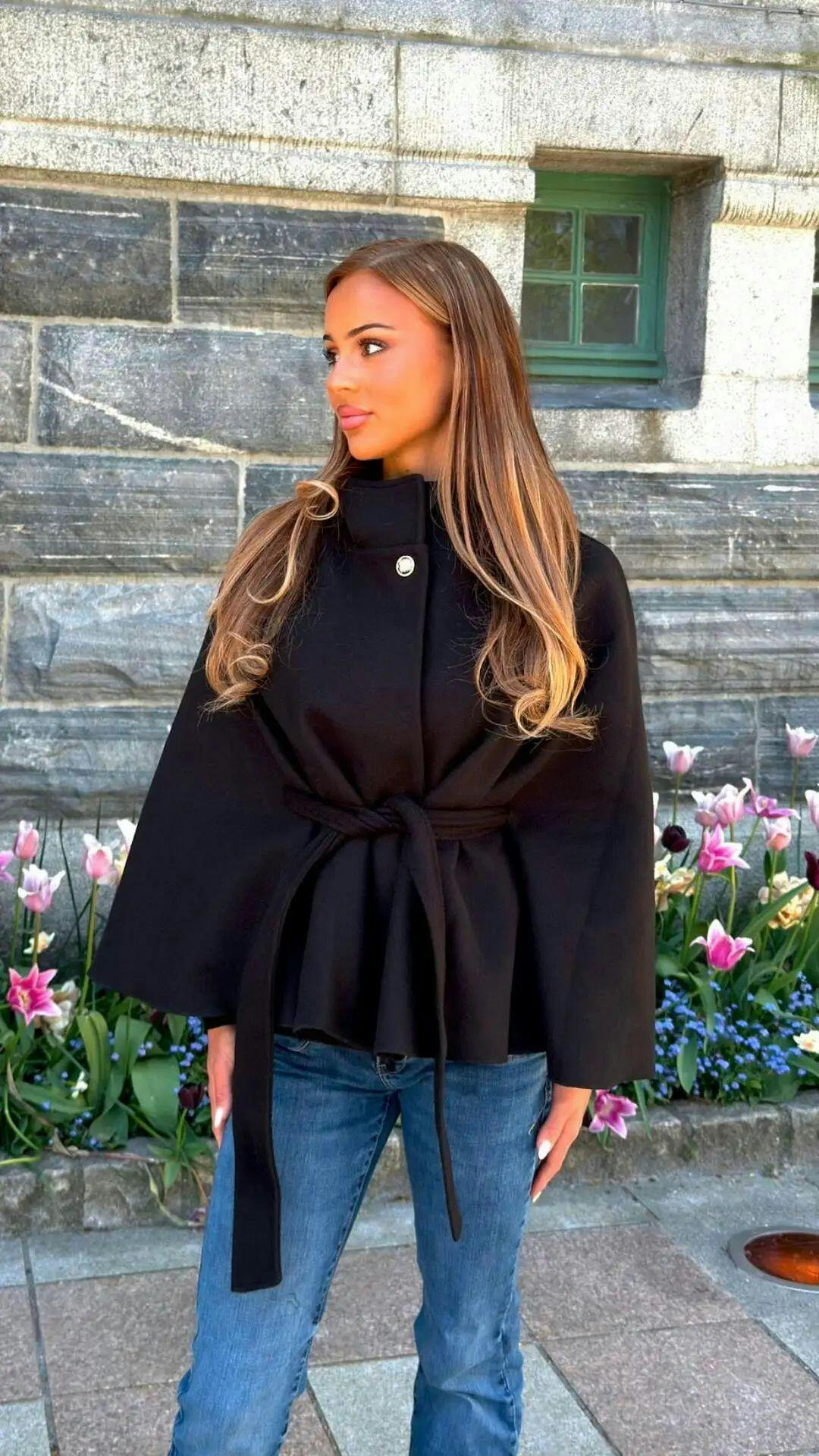 Women’s Belted Cape Jacket – Elegant Wool Blend Coat